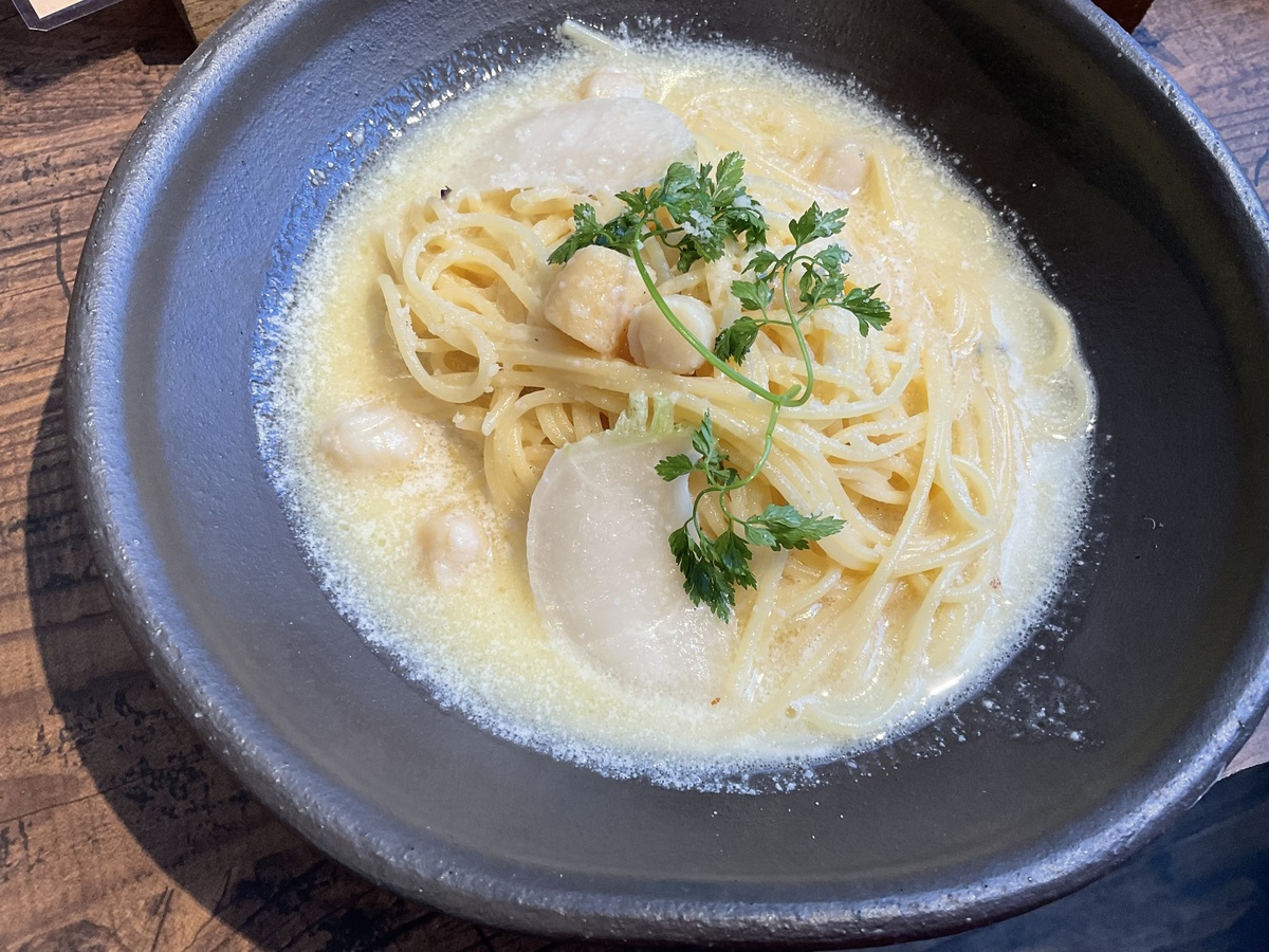 11月の月替わりパスタ『かぶと貝柱のチーズクリームパスタ』