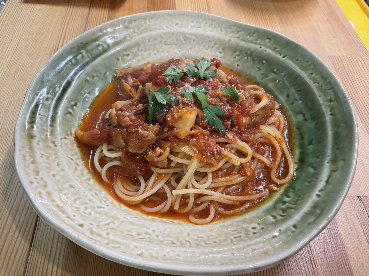 11月の月替わりパスタ2種『小芋とベーコンのトマトソースパスタ』